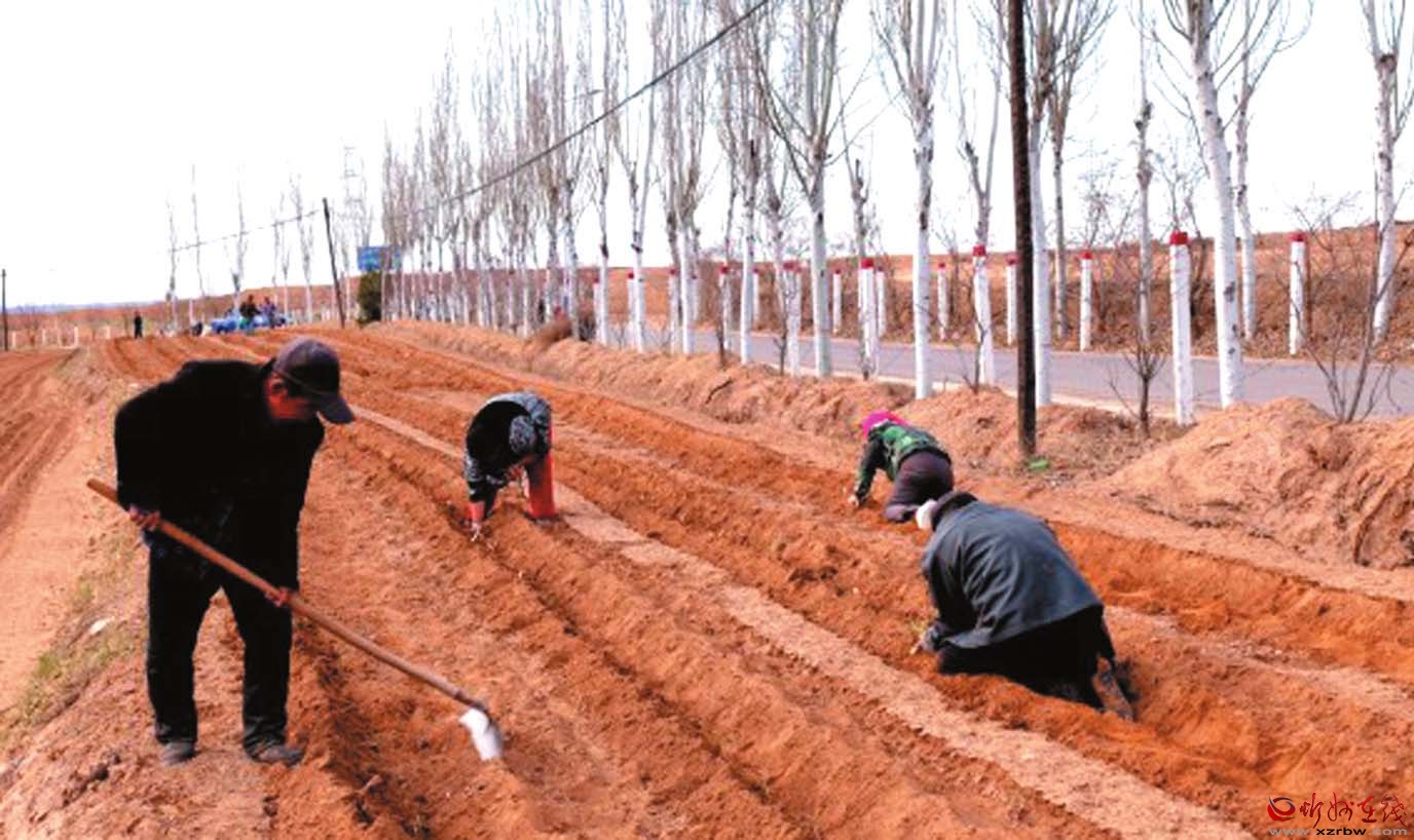 村民們精心栽種蔥苗。