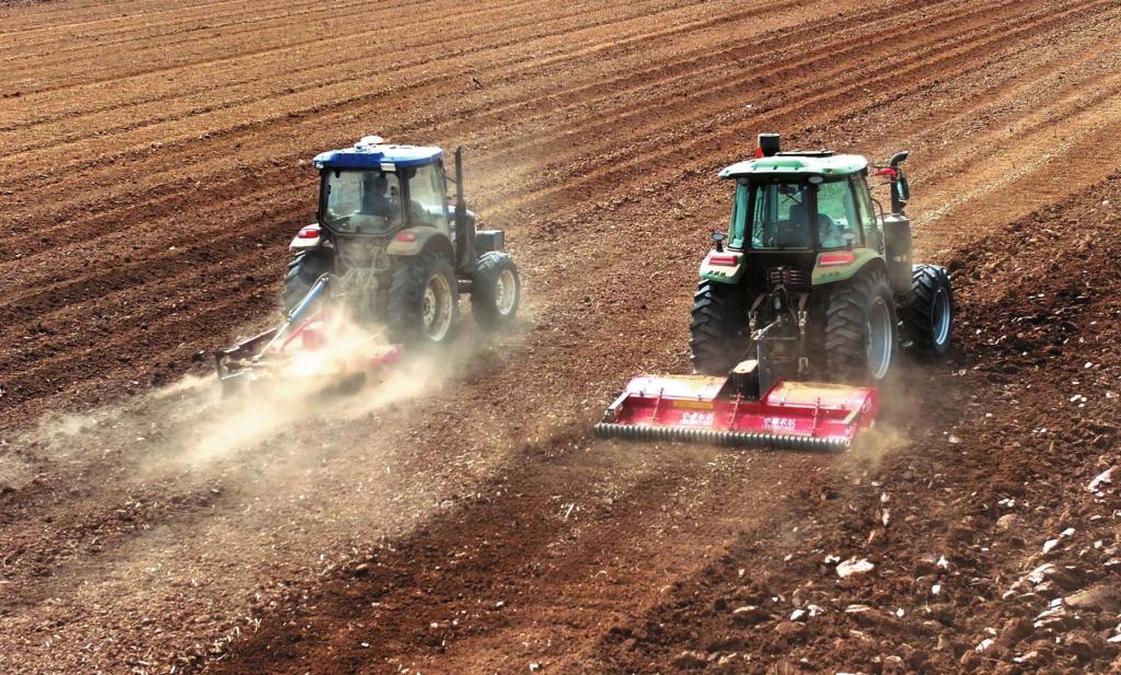 原平市王家莊鄉(xiāng)東泥河村的農(nóng)田里,搭載北斗導(dǎo)航系統(tǒng)的大型自動(dòng)駕駛拖拉機(jī)正牽引著施肥鋪滴灌一體起壟機(jī),緊張有序地進(jìn)行開(kāi)溝、起壟、施肥作業(yè),同時(shí)完成滴灌帶鋪設(shè)工作。(樊晶璟攝)