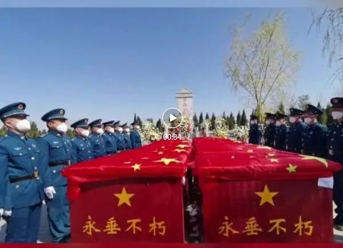 天空云低,蒼柏低垂。一首《思念曲》,帶來陣陣哀思,深沉低回,覆蓋著國旗的16位烈士的棺槨由禮兵緩緩抬入陵園,莊重地?cái)[放在紀(jì)念碑前。全體人員手握鮮花莊嚴(yán)肅立,祭奠忠魂,向?yàn)閲柢|的革命烈士表達(dá)深切哀思和無限敬仰之情。禮兵護(hù)送烈士靈柩到指定墓位安葬,參加儀式的全體人員向烈士獻(xiàn)花,生長于這片土地的英雄,將在此長眠。