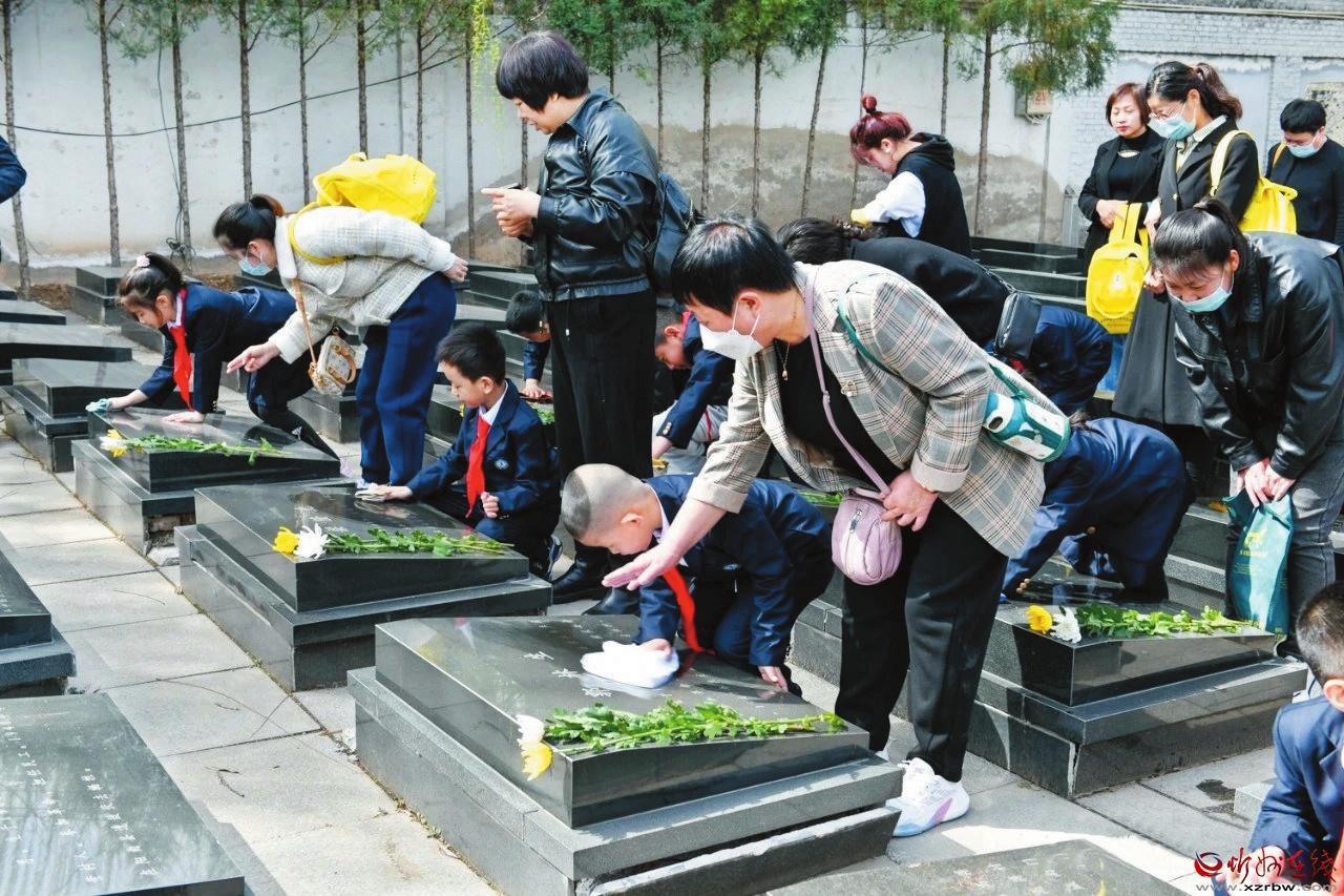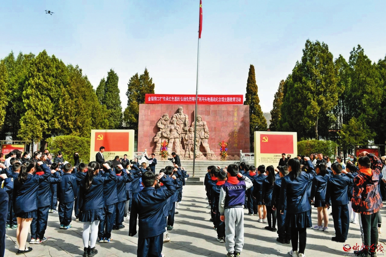 在西河頭地道戰(zhàn)紀(jì)念館英雄紀(jì)念碑前,大家聆聽(tīng)革命先烈故事,向烈士紀(jì)念碑敬獻(xiàn)花圈,寄托對(duì)革命先烈的無(wú)限哀思和敬仰之情。 本報(bào)通訊員攝