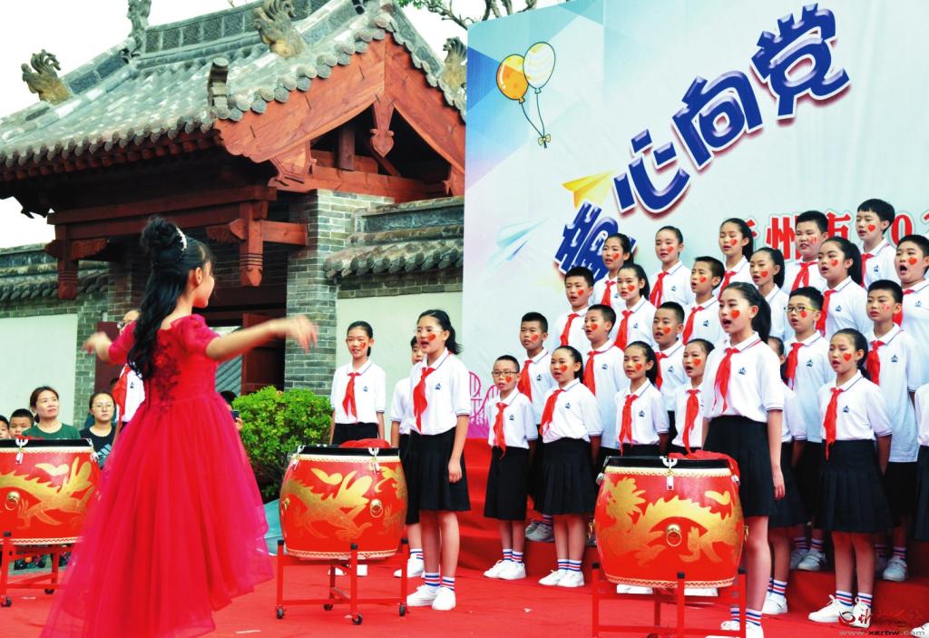 童心向黨,快樂成長。孩子們高唱《我們是共產(chǎn)主義接班人》,抒發(fā)對黨、對祖國的熱愛之情。 張存良攝