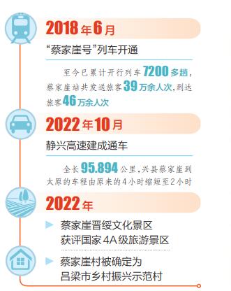 和王先生一樣,近年來,很多游客選擇乘坐火車到蔡家崖旅行,而蔡家崖的村民們很多會乘坐火車到外地上學(xué)和工作。據(jù)蔡家崖火車站值班站長蔣偉介紹,自2018年太原至蔡家崖的列車開通以來,已累計開行7200多趟,該站發(fā)送旅客39萬余人次,到達旅客46萬余人次。