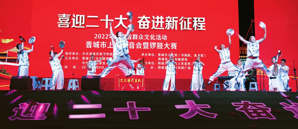 黨的二十大即將召開,三晉兒女歡欣鼓舞,充滿期待。晉城市上黨八音會(huì)在鑼鈸并舉、激越高昂的聲樂中,將黨的二十大召開的喜訊,傳遍澤州大地;運(yùn)城市旗袍展演秀出紅紅火火的幸福日子及喜慶之情;臨汾市鑼鼓大賽奏響時(shí)代最強(qiáng)音,禮贊新時(shí)代……三晉大地載歌載舞,一系列主題文化活動(dòng)都表達(dá)著對黨的二十大的翹首企盼,及對祖國更加繁榮昌盛的祝福之情。