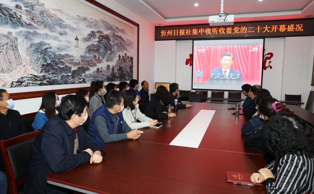 在兩個(gè)小時(shí)的時(shí)間里,市委宣傳部新聞科科長(zhǎng)張國(guó)彥聚精會(huì)神地收看著二十大開(kāi)幕直播,隨身攜帶的筆記本上記滿了要點(diǎn)?!罢娴奶?dòng)了。黨的二十大是在全黨全國(guó)各族人民邁上全面建設(shè)社會(huì)主義現(xiàn)代化國(guó)家新征程、向第二個(gè)百年奮斗目標(biāo)進(jìn)軍的關(guān)鍵時(shí)刻召開(kāi)的一次十分重要的大會(huì)。今后,要切實(shí)把學(xué)習(xí)宣傳貫徹黨的二十大精神作為首要政治任務(wù),在學(xué)懂、弄通、做實(shí)上下功夫,在帶頭學(xué)、促進(jìn)學(xué)、深入學(xué)上下功夫,用黨的二十大精神統(tǒng)一思想、凝聚力量,統(tǒng)攬全局、謀劃工作,為全方位推動(dòng)忻州高質(zhì)量發(fā)展作出自己應(yīng)有的貢獻(xiàn)?!?/p>