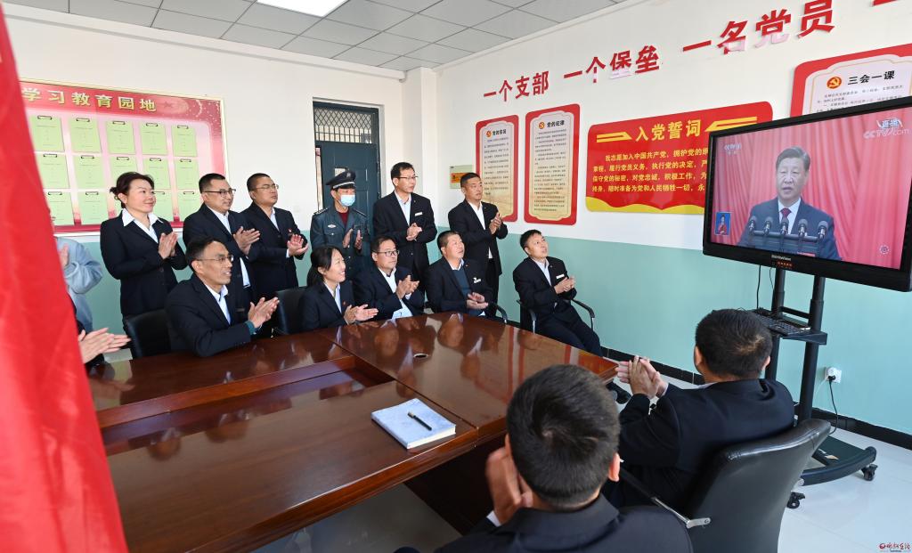 中鐵十七局集團(tuán)公司雄忻高鐵項(xiàng)目部組織收看。馮偉倫 攝