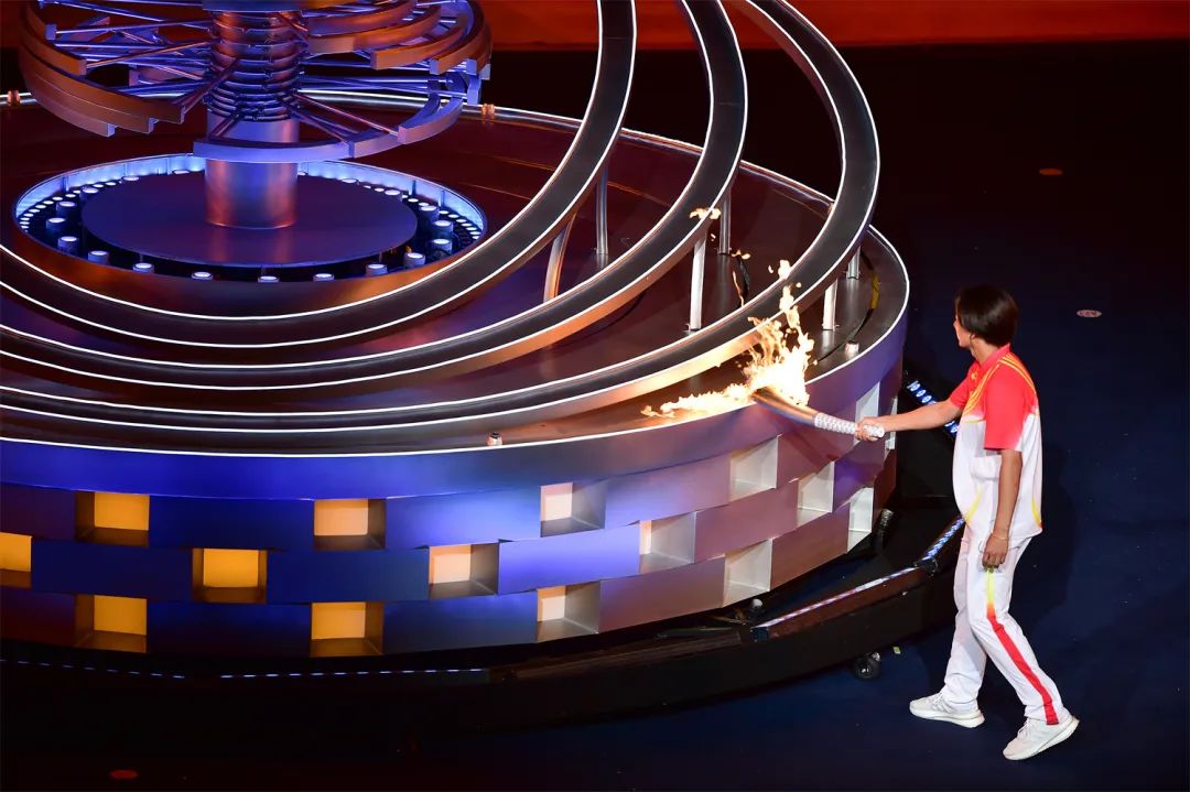 開幕式之夜,最為激動(dòng)人心的就是點(diǎn)火時(shí)刻。在射擊世界冠軍張益梵、鄉(xiāng)村干部王春、環(huán)衛(wèi)工人孫秀蘭、大國工匠官生花、公交司機(jī)馮冰依次傳遞過后,火炬來到了最后一棒火炬手、北京冬奧會(huì)冠軍蘇翊鳴的手中。主火炬塔點(diǎn)火裝置以山西民俗“旺火”為設(shè)計(jì)依據(jù),采用清潔能源“微火”點(diǎn)燃的方式。蘇翊鳴手持火炬,在萬眾矚目之下,以“微火”點(diǎn)“旺火”,歷史、現(xiàn)在與未來,在這一刻融匯賡續(xù)。
