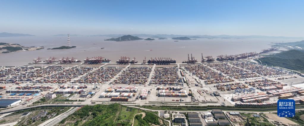 5月9日拍攝的寧波舟山港穿山港區(qū)(無人機全景照片)。新華社記者 翁忻旸 攝
