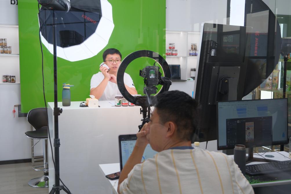 9月6日,銷售人員正在德祥實(shí)業(yè)有限公司內(nèi)進(jìn)行電商直播。新華社記者 趙鑫虎 攝