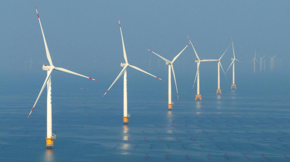 距離大連莊河市海岸線20多公里的黃海海域,300多座高約百米的“大風(fēng)車(chē)”聳立在藍(lán)天碧海間,巨大的風(fēng)電機(jī)組葉片不停轉(zhuǎn)動(dòng)。莊河市發(fā)展和改革局副局長(zhǎng)吳靜說(shuō):“目前,莊河已有4個(gè)海上風(fēng)電項(xiàng)目并網(wǎng)運(yùn)行,年發(fā)電量可達(dá)27.3億度。”