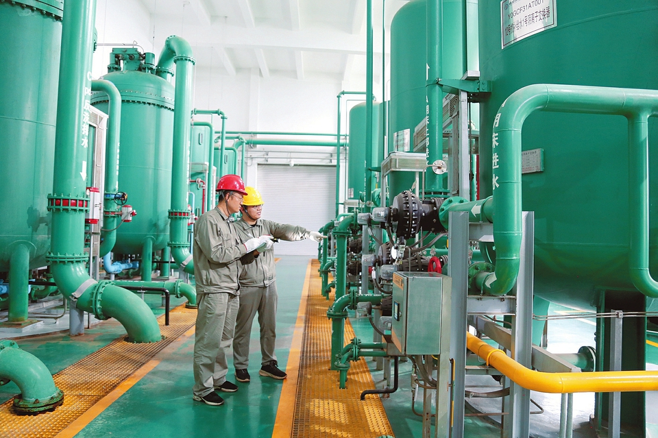 黨的二十大報告中指出:“推動經(jīng)濟社會發(fā)展綠色化、低碳化是實現(xiàn)高質(zhì)量發(fā)展的關(guān)鍵環(huán)節(jié)。”裕光煤電發(fā)電部經(jīng)理胡耀東介紹,裕光煤電2×1000MW超超臨界燃煤空冷發(fā)電機組于2021年8月實現(xiàn)雙機投產(chǎn)發(fā)電,是我省首臺轉(zhuǎn)入商業(yè)運營的百萬千瓦發(fā)電機組、首座以“點對網(wǎng)”方式“晉電送冀”的百萬千瓦電站。機組采用廢水零排、三塔合一等系列新技術(shù)新應(yīng)用,大大降低了二氧化碳、二氧化硫、煙塵、氮氧化物等污染物排放,完全滿足節(jié)能、環(huán)保、高效、循環(huán)利用等國家最新產(chǎn)業(yè)政策要求。
