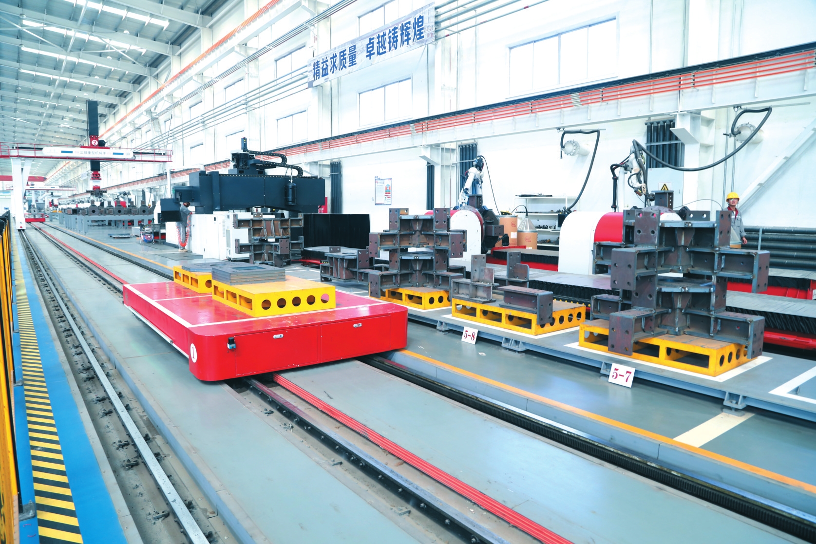 比如全流程智能化作業(yè)的鋼結構構件成品焊接生產(chǎn)線,通過三軸機械手、雙軸旋轉變位機、焊接機器人等智能設備實現(xiàn)精準組裝、焊接。經(jīng)激光檢測確保構件精度后,由打磨機械手完成自動化焊縫處理,再通過端面精銑和拋丸工藝提升成品質(zhì)量,最后在全封閉的智能噴涂工作站完成涂裝烘干。構件精度,居然精確到“絲”。