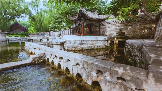 這首詩描寫的景致主要是“晉祠之水”。從詩中,我們可以發(fā)現(xiàn)晉祠之水有兩個(gè)特點(diǎn)。一是綠,因?yàn)樗袖仢M莎草,所以“晉祠之水如碧玉”。這景象如今前往晉祠還能看得見。二是水量充沛,能讓人“浮舟弄水”,而船上除了李白、元演,還有許多樂工歌伎,免不了還會(huì)有其他賓客,合理猜測(cè),船定然不是一葉扁舟,起碼是游船不可。李白寫詩好夸張,形容晉祠之水為“百尺清潭”。然而他也說過“桃花潭水深千尺”,廬山瀑布“飛流直下三千尺”,說晉祠之水僅僅“百尺”,在李白詩中尚算保守。