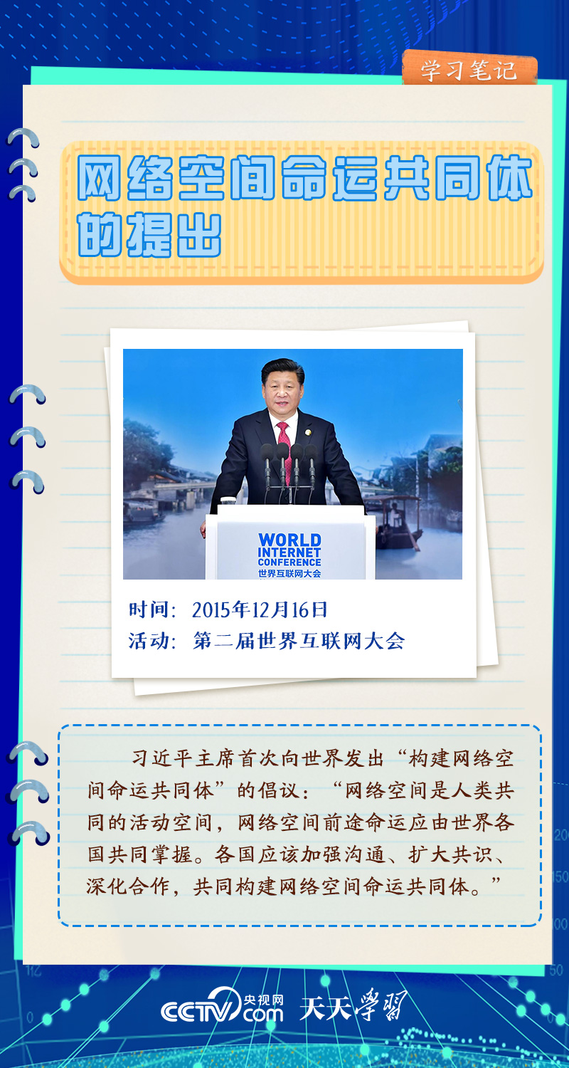 天天學(xué)習(xí)“互聯(lián)網(wǎng)發(fā)展是無國界、無邊界的,利用好、發(fā)展好、治理好互聯(lián)網(wǎng)必須深化網(wǎng)絡(luò)空間國際合作,攜手構(gòu)建網(wǎng)絡(luò)空間命運共同體。”面對日益發(fā)展擴大的網(wǎng)絡(luò)空間,習(xí)近平主席倡導(dǎo)構(gòu)建網(wǎng)絡(luò)空間命運共同體,為推動全球網(wǎng)絡(luò)空間互聯(lián)互通、共享共治注入中國智慧。