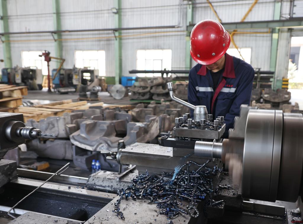 工人在繁峙中環(huán)鑄業(yè)有限公司加工車間內(nèi)作業(yè)。宮清華攝