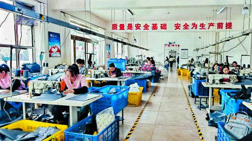 廣惠園社區(qū)幫扶車間,工人加工出口箱包。 趙文君攝