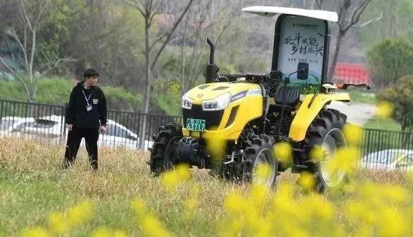 ▲位于光谷北斗大廈的武漢依迅北斗時(shí)空技術(shù)股份有限公司園區(qū)內(nèi),安裝了北斗高精度農(nóng)機(jī)自動(dòng)駕駛終端的拖拉機(jī)正在進(jìn)行測試