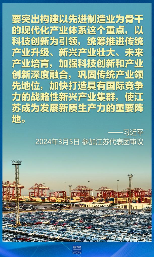 5日下午,習(xí)近平在參加他所在的十四屆全國人大二次會議江蘇代表團(tuán)審議時強(qiáng)調(diào),因地制宜發(fā)展新質(zhì)生產(chǎn)力。