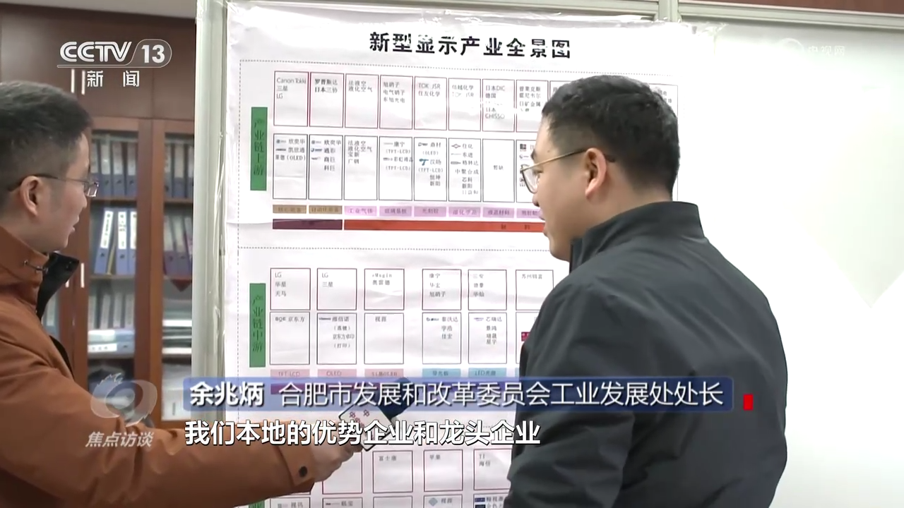 合肥市發(fā)展和改革委員會工業(yè)發(fā)展處處長余兆炳:“新型顯示產(chǎn)業(yè)全景圖上面顯示了合肥市發(fā)展新型顯示的產(chǎn)業(yè)鏈的上游、中游、下游本地的優(yōu)勢企業(yè)和龍頭企業(yè),有這個全景圖,我們對標作戰(zhàn)、掛圖作戰(zhàn)非常可視化作戰(zhàn)?!?/p>