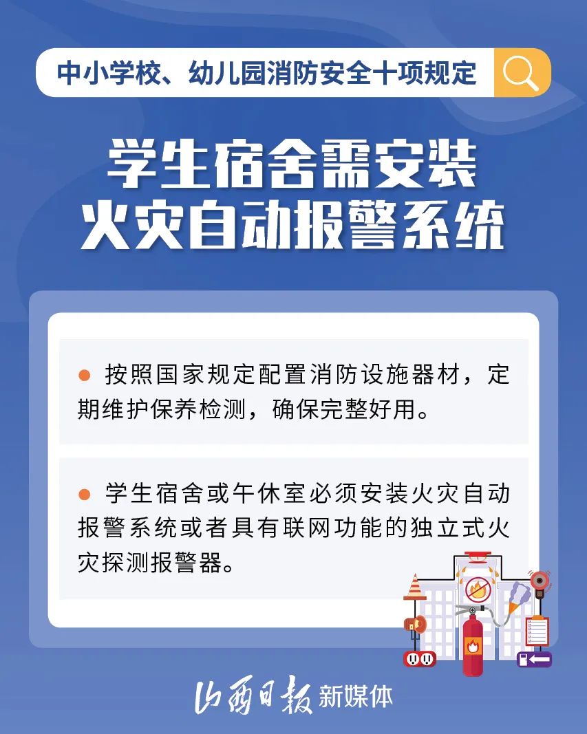 為加強(qiáng)中小學(xué)校、幼兒園消防安全管理,近日,教育部、國家消防救援局研究制定了《中小學(xué)校、幼兒園消防安全十項規(guī)定》,具體規(guī)定內(nèi)容如下。