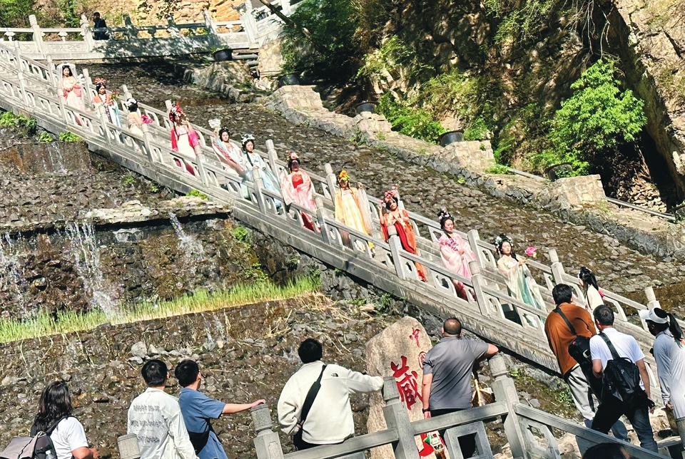 “五一”期間,盂縣東高速口和陽(yáng)泉北站,都有直通藏山的假日惠民旅游直通車?!皣?guó)風(fēng)古意 邂逅陽(yáng)泉”巡游活動(dòng)由12名舞蹈演員組成文旅小分隊(duì),在景區(qū)開(kāi)展巡游、展示、打卡等活動(dòng),吸引游客圍觀并參與互動(dòng)。