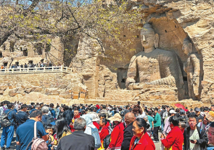 5月4日,游客在世界文化遺產(chǎn)云岡石窟游覽、參觀。 “五一”期間,大同市豐富獨(dú)特的旅游資源吸引八方游客紛至沓來,長(zhǎng)城一號(hào)旅游公路沿線成為自駕游熱門目的地。觀名勝、親自然、品美食、看演藝,游客感受到大同文旅的精彩魅力與蓬勃活力。 劉通 于宏 張占兵攝 (責(zé)任編輯:梁艷) |