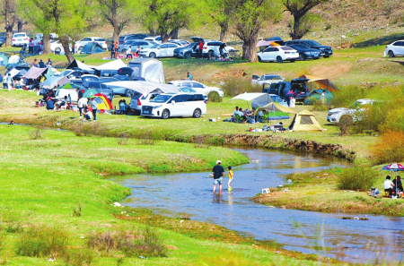 飲馬河岸邊營(yíng)地林立,不少游客選擇在此放松休閑。