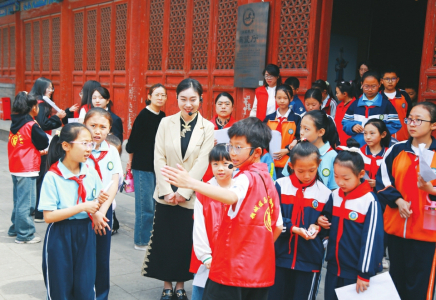 小志愿者為游客講解。本報(bào)記者馬占富攝
