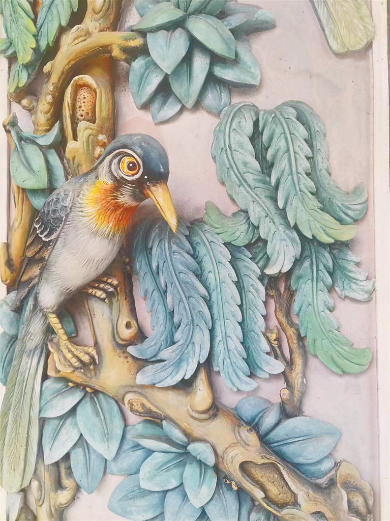 “除了木結(jié)構(gòu)的磚瓦房,其實(shí)混凝土樓房一樣可以做灰塑?!痹S達(dá)聯(lián)說(shuō),他在老家建了兩層樓房,屋里屋外做了很多灰塑,“我就想做個(gè)表率,希望有更多民居用灰塑進(jìn)行裝飾”。