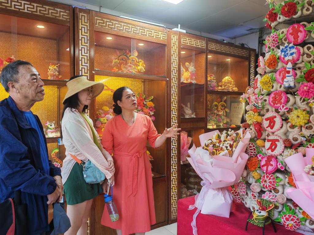 新華社西安6月19日電(記者孫正好)“沒想到一個(gè)面團(tuán),能被玩出這么多花樣!”在陜西韓城古城歷史文化街區(qū)的一家花饃店內(nèi),北京游客王華對著造型各異的韓城花饃發(fā)出感嘆。