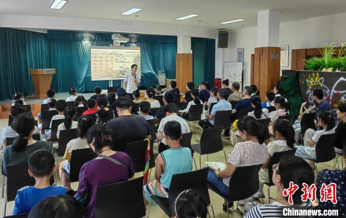寧波圖書館“共讀Moment·閱經(jīng)典”活動(dòng)現(xiàn)場(chǎng)幾乎座無虛席,當(dāng)?shù)刂Z(yǔ)文教師北辰為孩子們講解柳宗元的《江雪》。 中新網(wǎng)記者 應(yīng)妮 攝