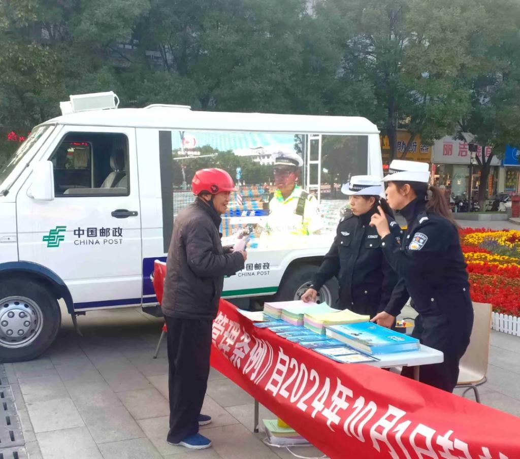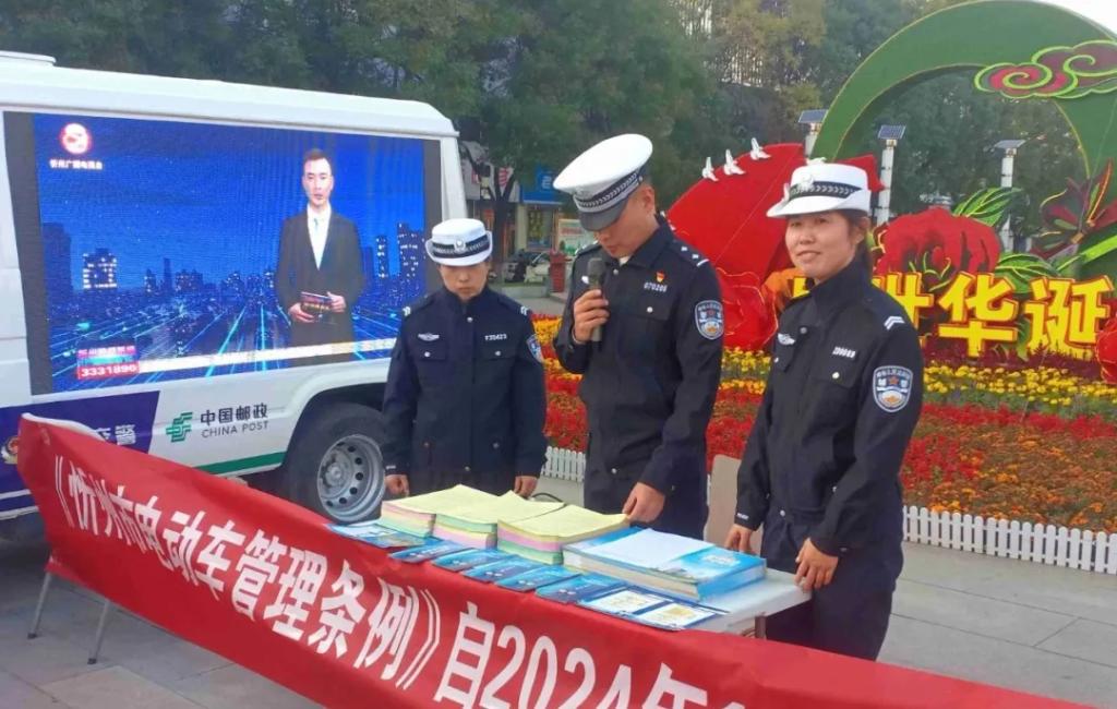 在人頭攢動(dòng)的廣場上,“一盔一帶”宣傳展板、警郵直播車大屏幕吸引了過往群眾駐足觀看?!按髬?,新修訂的《忻州市電動(dòng)車管理?xiàng)l例》已于本月1日起開始施行,您知道嗎?”“大叔,您這舊的電動(dòng)自行車要抓緊時(shí)間登記備案、辦理臨時(shí)牌照,咱忻府區(qū)24個(gè)警郵合作電動(dòng)自行車便民登記服務(wù)網(wǎng)點(diǎn)都能辦理過渡期臨牌”“騎乘電動(dòng)自行車必須要佩戴安全頭盔,不能闖紅燈、逆行......”