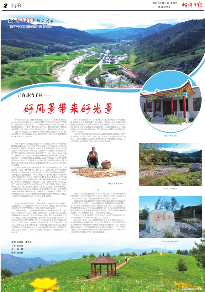 “我們村地處山區(qū),山路崎嶇,耕地稀少,一度村民外流嚴(yán)重。灣子村位于駝梁景區(qū)中心,景區(qū)內(nèi)群山環(huán)抱,高聳入云,生態(tài)環(huán)境幾近原始,植被覆蓋率達(dá)90%以上,有野生動(dòng)物800余種。景區(qū)雖地處高寒區(qū),但從五月杜鵑花開(kāi)到九月秋菊吐艷,花香不斷。景區(qū)內(nèi)泉水潺潺,灌木叢生,奇花異草、山珍野禽隨處可見(jiàn),與自然形成的白云洞、水簾洞、南天門(mén)等十大景觀,構(gòu)成一個(gè)巧奪天工的人間仙境。”五臺(tái)縣灣子村黨支部書(shū)記王麗軍見(jiàn)證了灣子村的發(fā)展,“為找出路,我們利用這里有山有水的環(huán)境優(yōu)勢(shì)打造旅游特色景點(diǎn)。2019年摘帽脫貧后,村民開(kāi)始端起‘生態(tài)碗’,吃上‘旅游飯’。今年7月旅游旺季時(shí),我們村日接待游客超1萬(wàn)余人次。”