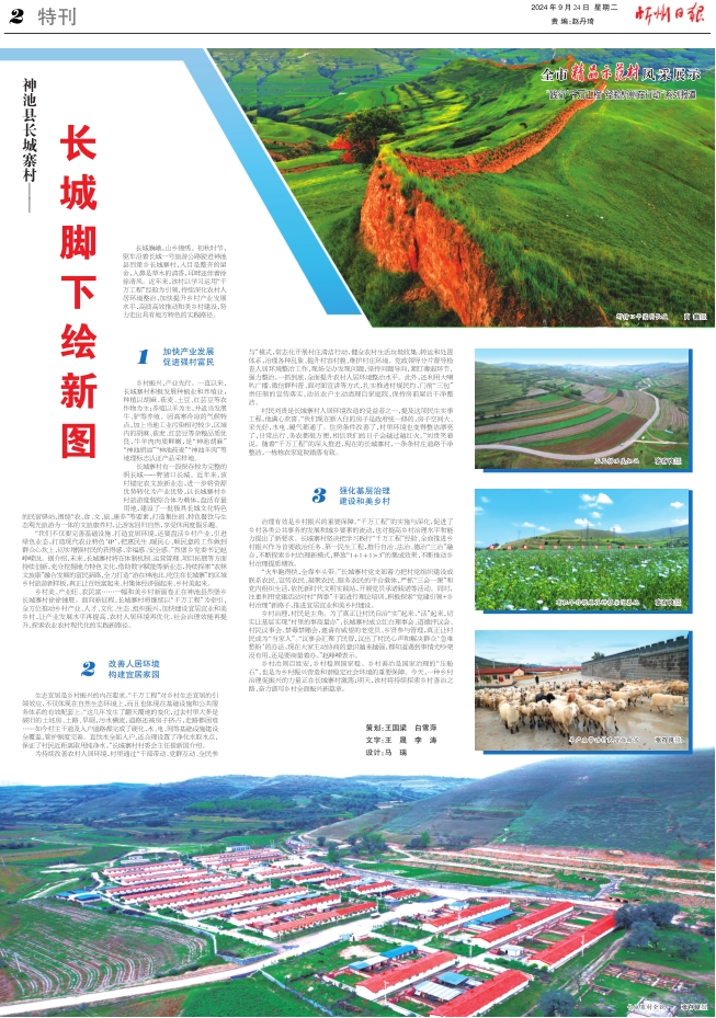 鄉(xiāng)村美、產(chǎn)業(yè)旺、農(nóng)民富……一幅和美鄉(xiāng)村新畫卷正在神池縣烈堡鄉(xiāng)長城寨村徐徐鋪展。面向新征程,長城寨村將繼續(xù)以“千萬工程”為牽引,全方位推動(dòng)鄉(xiāng)村產(chǎn)業(yè)、人才、文化、生態(tài)、組織振興,加快建設(shè)宜居宜業(yè)和美鄉(xiāng)村,讓產(chǎn)業(yè)發(fā)展水平再提高、農(nóng)村人居環(huán)境再優(yōu)化、社會(huì)治理效能再提升,探索農(nóng)業(yè)農(nóng)村現(xiàn)代化的實(shí)踐新路徑。