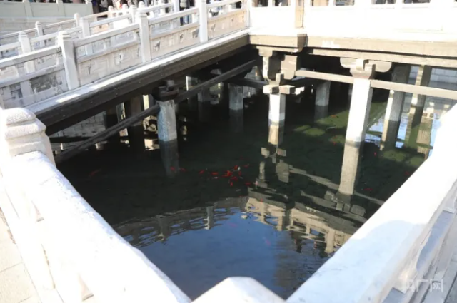 中國(guó)最早的水陸立交橋——魚沼飛梁。魚沼飛梁西依圣母殿,東鄰獻(xiàn)殿,初建在北魏之前。飛梁的形式古樸,橫跨于魚沼之上,借以觀賞景物,南北東西四面伸長(zhǎng),如鳥之振翼欲飛狀,是中國(guó)少有的一種十字橋梁形式,被譽(yù)為中國(guó)最早的水陸立交橋。