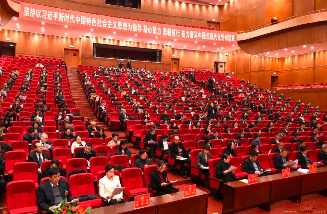 當(dāng)日上午,忻州大劇院大劇場布置簡樸,氣氛莊重?zé)崃?。中國人民政治協(xié)商會(huì)議會(huì)徽懸掛在主席臺(tái)正中,十面鮮艷的紅旗分列兩側(cè)。會(huì)場內(nèi)高高懸掛著大紅橫幅:堅(jiān)持以習(xí)近平新時(shí)代中國特色社會(huì)主義思想為指導(dǎo),凝心聚力,勇毅前行,奮力譜寫中國式現(xiàn)代化忻州篇章。