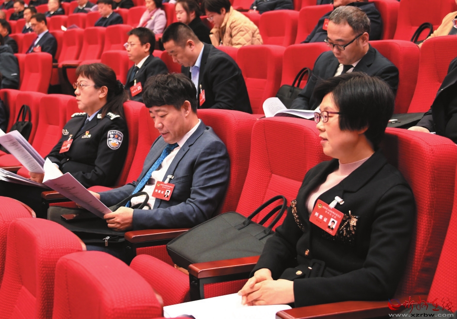 認(rèn)真聽(tīng)取報(bào)告。 本報(bào)記者 劉紀(jì)森攝