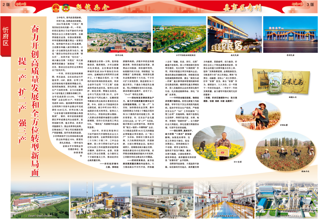 2025年,忻府區(qū)將堅(jiān)持以習(xí)近平新時(shí)代中國(guó)特色社會(huì)主義思想為指導(dǎo),全面貫徹落實(shí)黨的二十大和二十屆二中、三中全會(huì)精神,深入學(xué)習(xí)貫徹習(xí)近平總書記對(duì)山西工作的重要講話重要指示精神,按照中央、省委、市委經(jīng)濟(jì)工作會(huì)議部署,全力做好五個(gè)方面的重點(diǎn)工作,推動(dòng)經(jīng)濟(jì)社會(huì)高質(zhì)量發(fā)展。