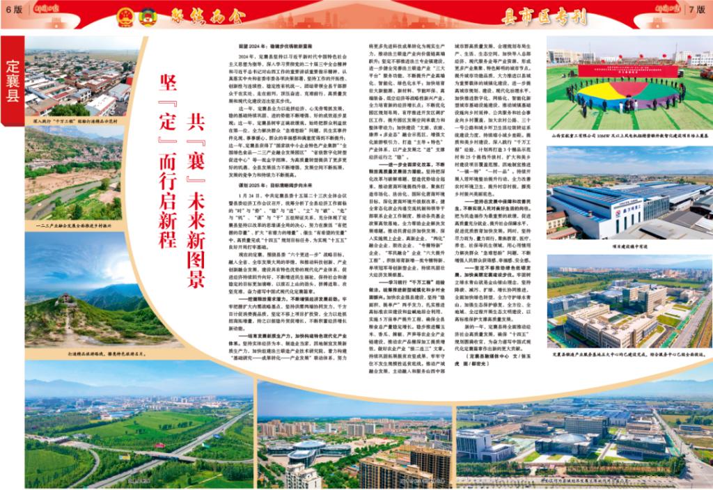 2024年,定襄縣堅持以習近平新時代中國特色社會主義思想為指導,深入學習貫徹黨的二十屆三中全會精神和習近平總書記對山西工作的重要講話重要指示精神,認真落實中央和省委市委各項決策部署,堅持工作的開拓性、創(chuàng)新性與連續(xù)性、穩(wěn)定性有機統(tǒng)一,團結帶領全縣干部群眾干在實處、走在前列,頂壓奮進、克難前行,高質量發(fā)展和現(xiàn)代化建設邁出堅實步伐。