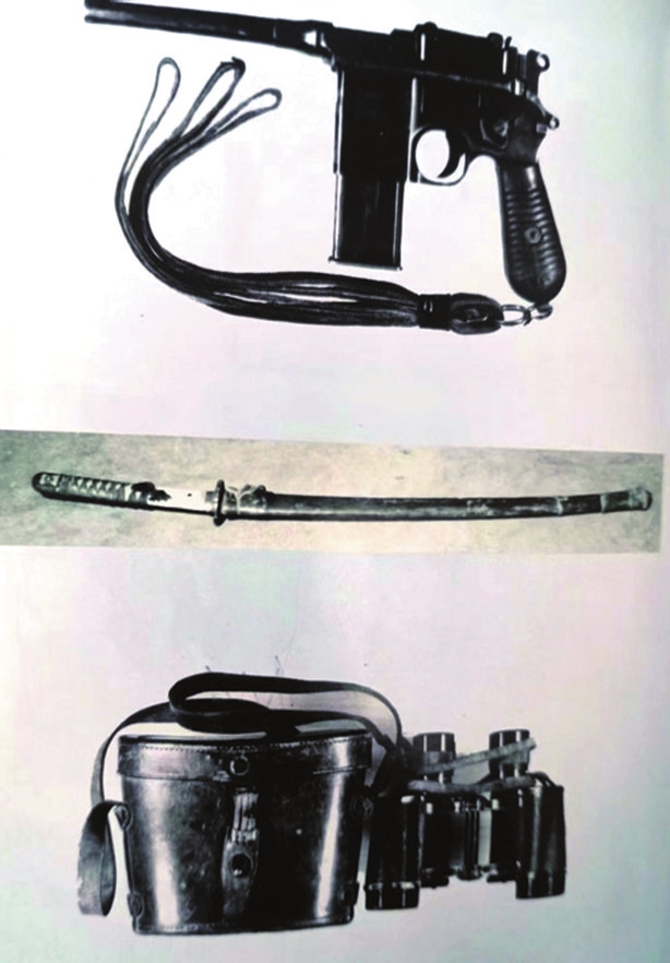 趙正午在與日寇和偽軍的戰(zhàn)斗中,使用最多的是三種武器,即手槍、大刀和望遠(yuǎn)鏡。手槍,該槍型于1895年經(jīng)改裝后由一次性裝10發(fā)子彈發(fā)射變成20發(fā)。這種槍管長約140毫米,口徑7.63毫米。由于槍套是一個(gè)木盒,故又稱這種槍為“匣子槍”“盒子炮”,或“駁殼槍”。八路軍和游擊隊(duì)在抗戰(zhàn)時(shí)期廣泛使用。大刀,刀身采用鎳合金鋼材機(jī)械加工,刀身開設(shè)血槽,刀柄大部分為木質(zhì),全長101.8厘米??箲?zhàn)期間,日軍不少軍刀被我八路軍和游擊隊(duì)繳獲,成為我對(duì)敵作戰(zhàn)的武器之一。當(dāng)年,趙正午在戰(zhàn)斗中繳獲了一把這款軍刀。望遠(yuǎn)鏡,德國于1920年前后研制生產(chǎn)的一種兩筒軍用望遠(yuǎn)鏡,具有較高的放大倍數(shù)和物鏡直徑,適合遠(yuǎn)距離觀察和戰(zhàn)場偵察??箲?zhàn)初期流入我國,該望遠(yuǎn)鏡長16厘米,寬11厘米。忻口戰(zhàn)役后,忻縣游擊隊(duì)在戰(zhàn)場上繳獲。