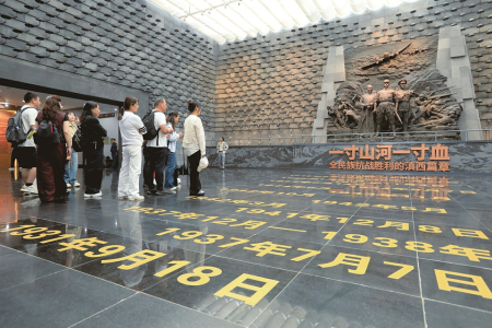 圖②:9月18日,人們在侵華日軍南京大屠殺遇難同胞紀念館參觀。