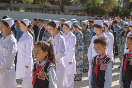 圖①:9月18日,在沈陽“九·一八”歷史博物館殘歷碑廣場拍攝的“勿忘九一八”撞鐘鳴警儀式現(xiàn)場。