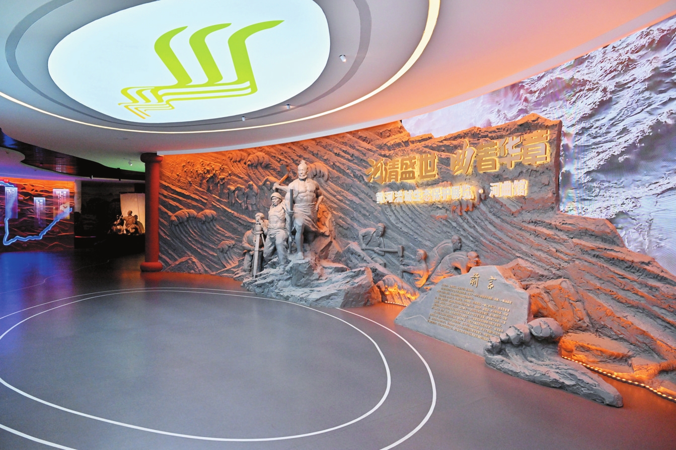 沿著黃河蜿蜒的足跡走進河曲縣,臨隩公園內(nèi)一座1900平方米的黃河流域生態(tài)保護展覽·河曲館正以“河清盛世曲著華章”的主題訴說著這片土地與母親河的千年情緣,五大篇章的展陳如黃河九曲連環(huán),將70年治黃史詩徐徐鋪展。